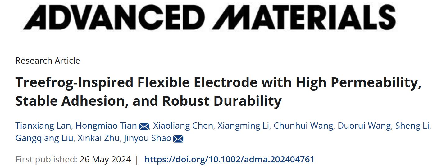 《Adv.Mater》:具有高透水透氣性、穩(wěn)定黏附和長時間耐用性的仿樹蛙腳蹼的可穿戴柔性電極