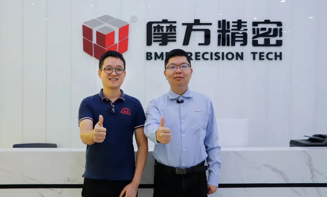 南極熊(右)專訪摩方精密市場部總監(jiān)邢羽翔(左)