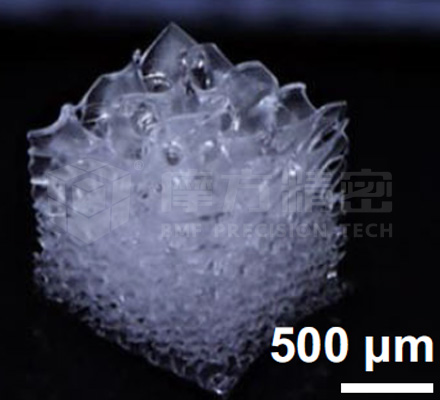 整體尺寸10x10x10mm3,壁厚150μm,PμSL 3D打印技術(shù)結(jié)合聚合物前驅(qū)體可以有效制備碳氧化硅陶瓷,且兼具高精度和優(yōu)異力學(xué)性能